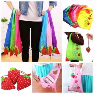 - Nylon Reusable Shopper Bags Multicolored ; Strawberry Shape Foldable Shopping Bag – Folds to Pocket Size, Tote Grocery Shoulder Handbag Travel Bag.