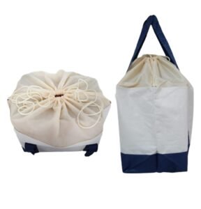 Be the first to review “SRZ Foldable Reusable Shopping Bag with draw string CLOTH CLOSURE cover, Shopping, Grocery, Supermarket, Picnic,Tote Bag (Off White with Dark Blue Strap/Handle _ Pack of 1 )” Cancel reply