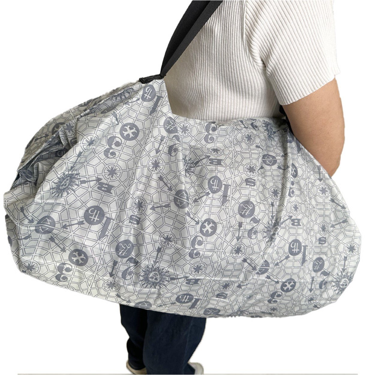 SRZ Foldable Shopping Bag with Zipper Picnic Snacks bag Shoulder Hand Bag Grocery bag Picnic Bag Nylon Waterproof ( SYMBOLS – Pack of 1 )