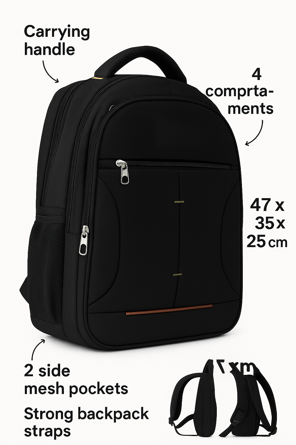 - Ample Capacity: The generous dimensions (Height: 47 cm, Length: 35 cm, Width: 25 cm) provide plenty of room for books, chargers, files, and personal items without feeling bulky.