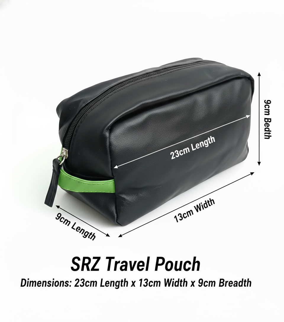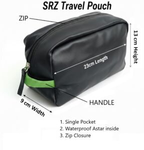 SRZ Travel Pouch, Black Waterproof Single Pocket Toiletry Bag with Handle, Premium Cloth Material, Zip Closure (23 x 13 x 9 cm)