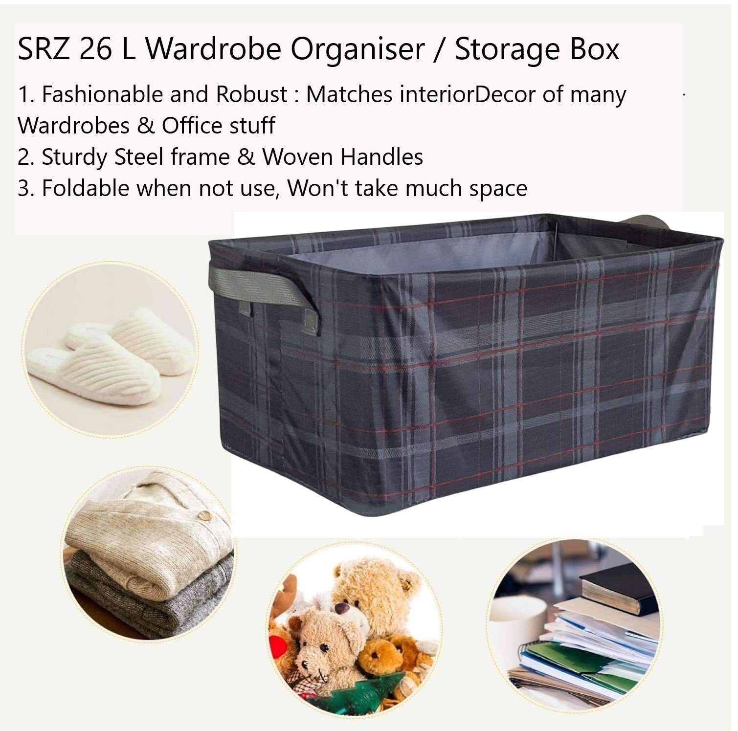 SRZ Wardrobe Cupboard Organiser Storage Box for Clothes Jeans Sarees Toys Double Layer Cloth with Steel Frame - DESIGNER CHECKS (48x30x20 cms, 26 Litres,Pack Of 2 )SRZ Wardrobe Cupboard Organiser Storage Box for Clothes Jeans Sarees Toys Double Layer Cloth with Steel Frame – DESIGNER CHECKS (48x30x20 cms, 26 Litres,Pack Of 2 )